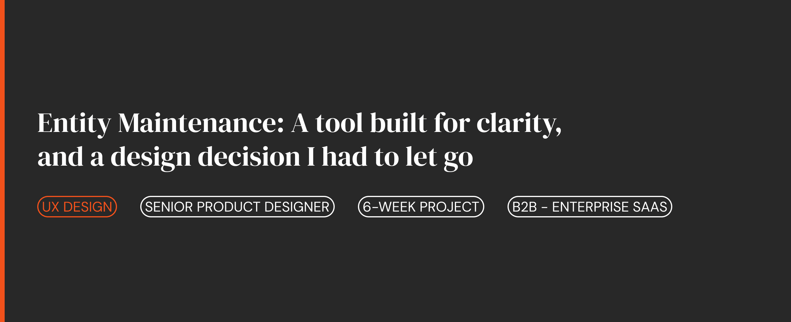 A deep dive into one tool from a larger self-service platform. Covering the specific design decisions that shaped the tool, including one I was genuinely proud of that did not make it to production, and on that came from going further than the brief required.