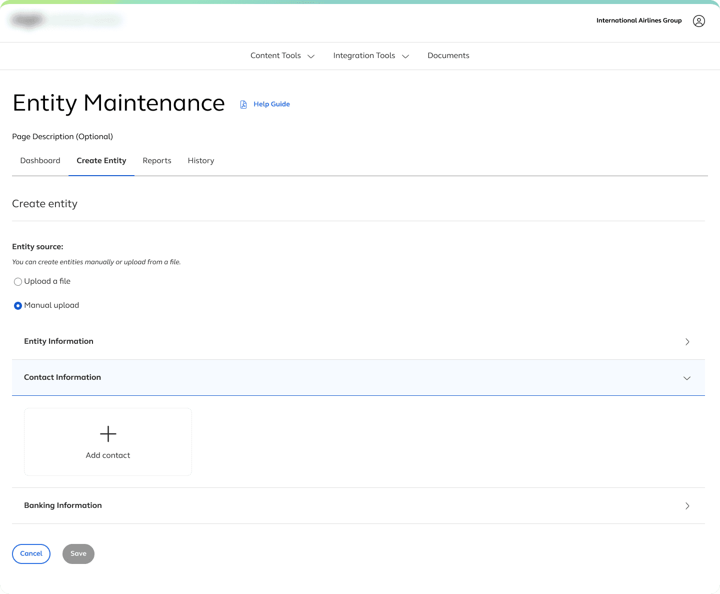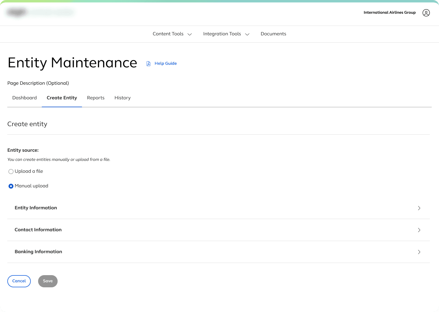 Large enterprise clients on the platform often operated across dozens or hundres of locations, each with its own address, contacts, and financial accounts. Before this tool existed, that information lived in spreadsheets, email threads, or nowhere in particular. Entity Maintenance gave clients a central place to create and manage records for each location within their organization.