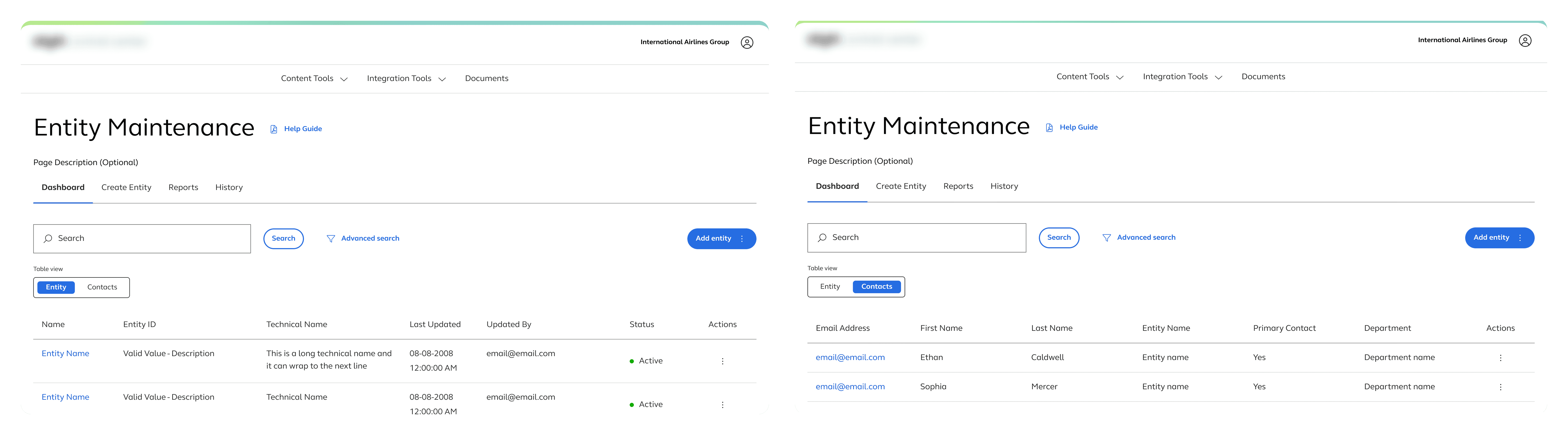 I proposed adding a toggle to the dashboard that would let users switch the table between an entity view and a contact view. In the contact view, they could search by name or email and then navigate directly to the associated entity. Before committing to the design I brought it to the PM and the developers to validate the idea and confirm it would not introduce any meaningful performance or complexity issues. It did not, so we moved forward.
