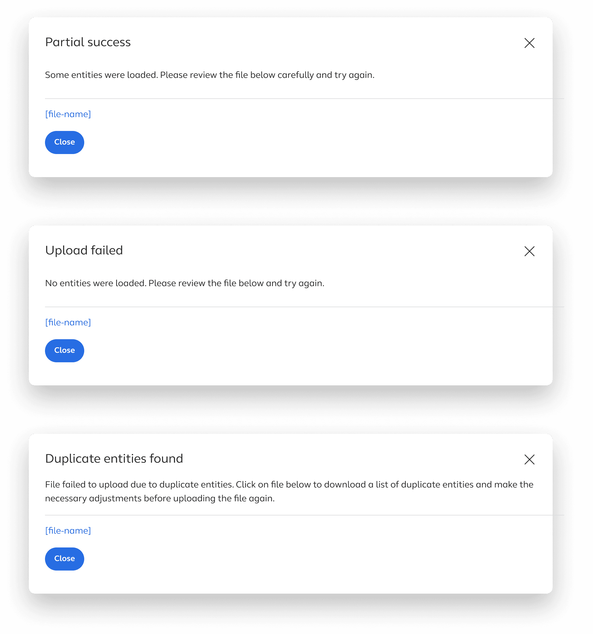 Clients managing a handful of locations might add them one by one using a manual form. Clients managing hundreds of locations needed a faster path. A simple radio button let users choose between uploading a CSV or Excel file and entering information manually. The file upload path included backend logic to catch duplicates, missing required fields, and other issues before anything was written to the system. If problems were found, the upload would skip those records and provide the user with a downloadable file listing everything that needed attention so they could fix it and try again rather than starting from scratch.