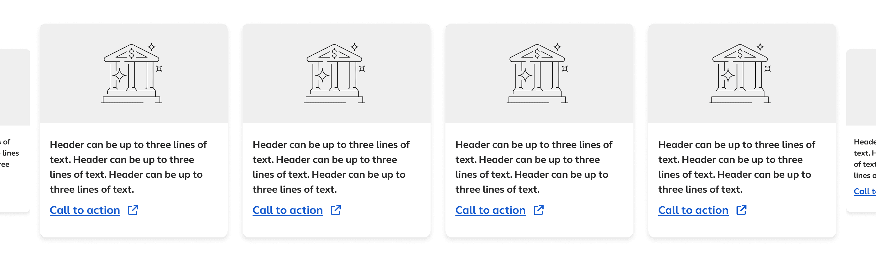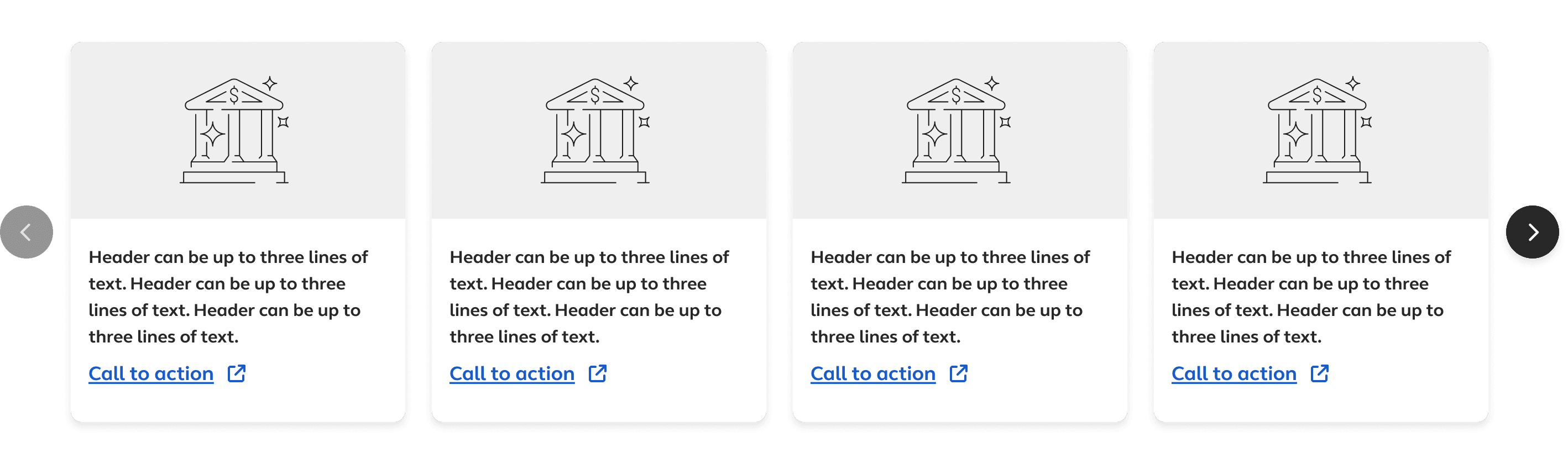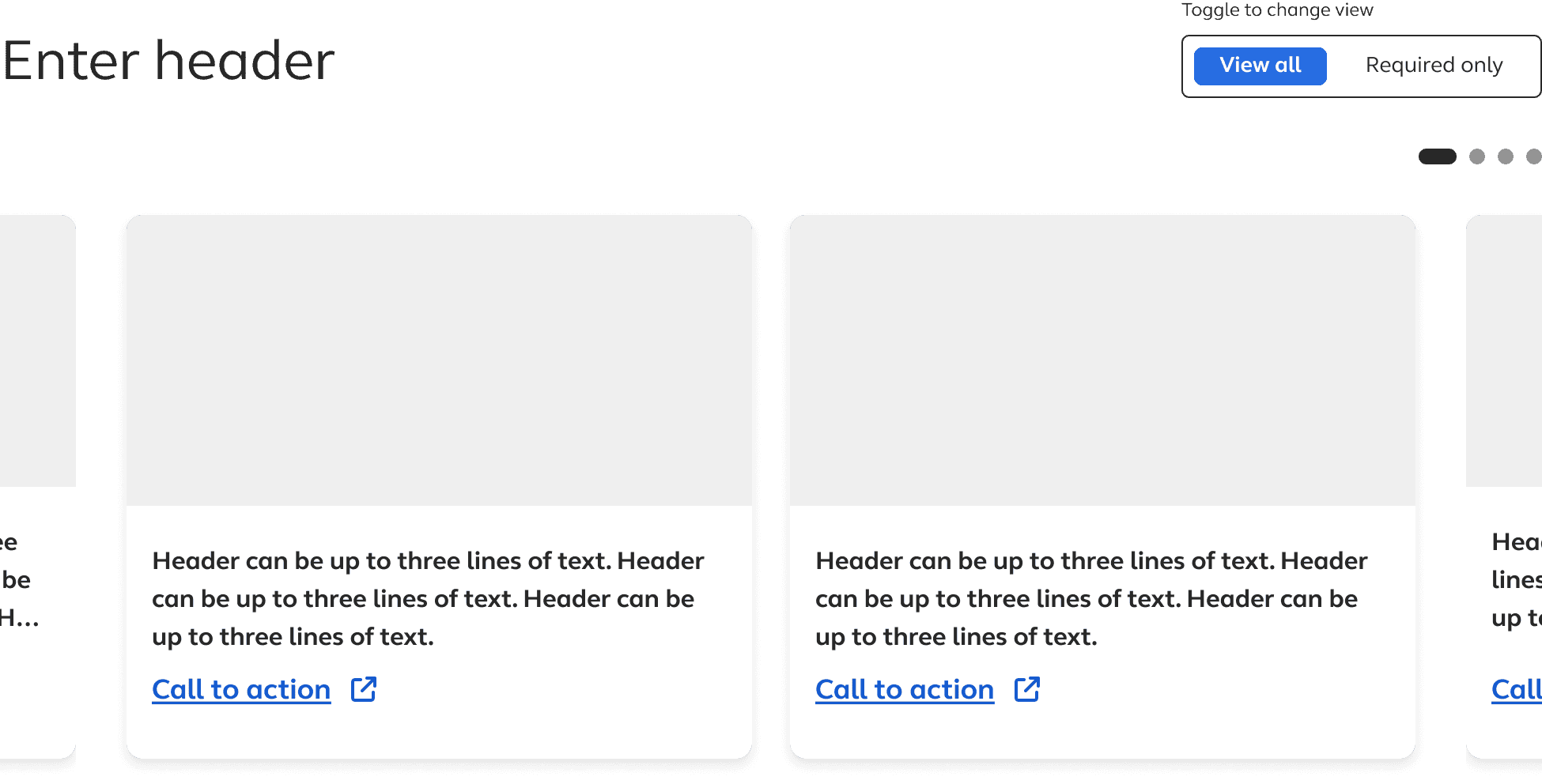 The stakeholders had a preference for an indicator style that I felt was too visually heavy and did not clearly communicate which page the user was on. I proposed a variation that split the difference. I borrowed the shape from an older carousel pattern that had been retired from the platform and combining it with a slightly larger active state indicator. This is the version we ended up moving forward with.