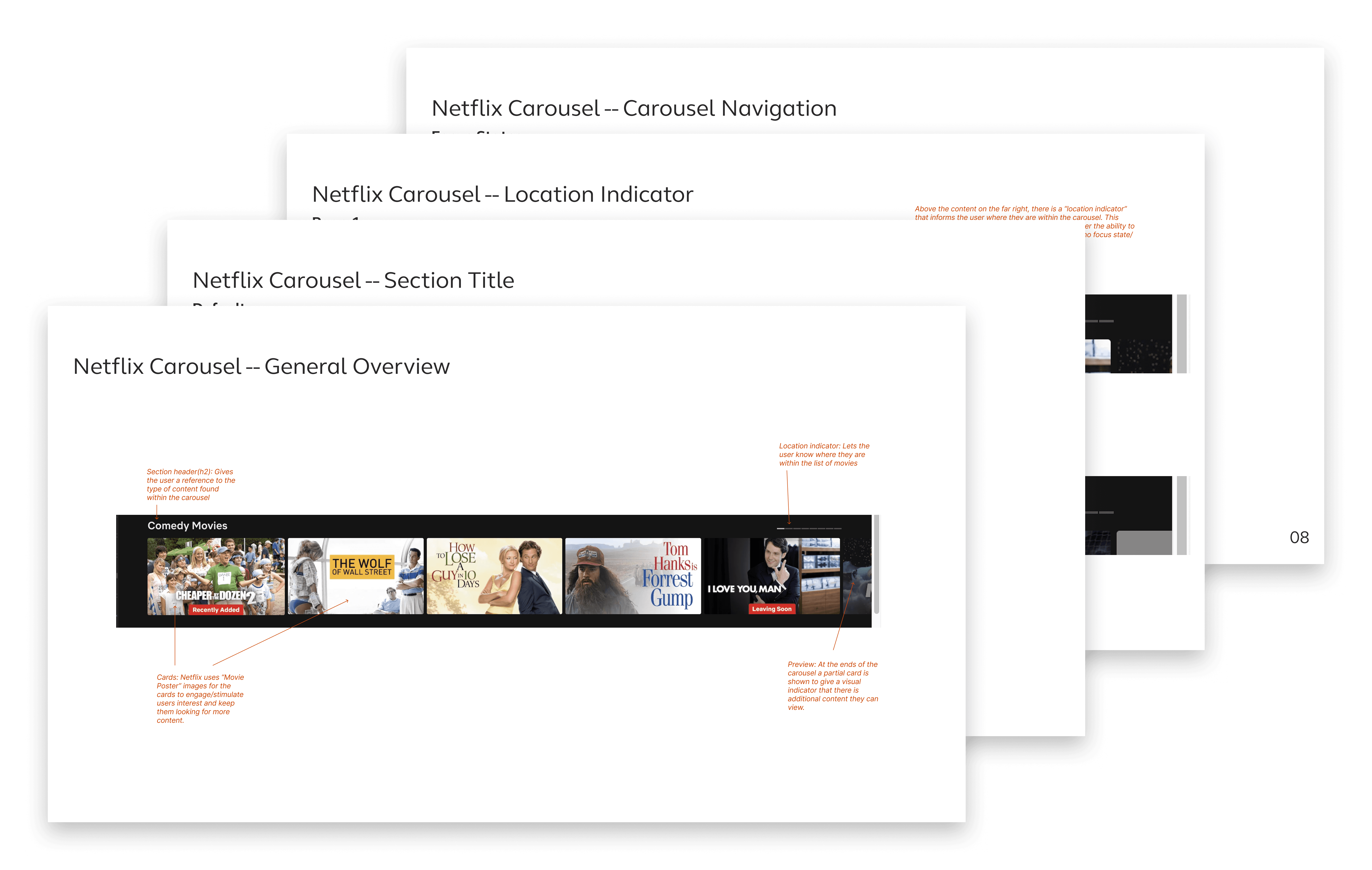 Before designing anything, I spent time doing a proper breakdown of the Netflix carousel. Not just how it looked, but how it functioned and why users responded to it the way they did.